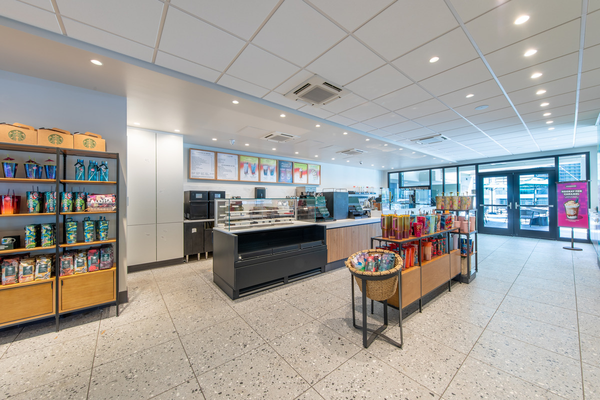 Allied Builders completed the interior renovation of the Starbucks at the UH Campus Center, upgrading the café and bar area while also performing supporting work below in the UH Bookstore and the mechanical room. Working in a busy campus environment, the team coordinated closely with the client and campus operations to manage access, maintain safety, and minimize disruption to bookstore activities and daily foot traffic.